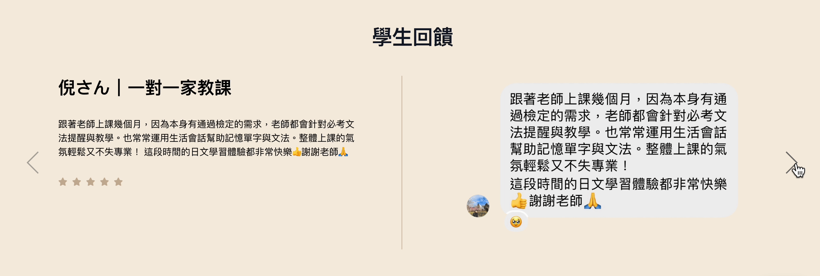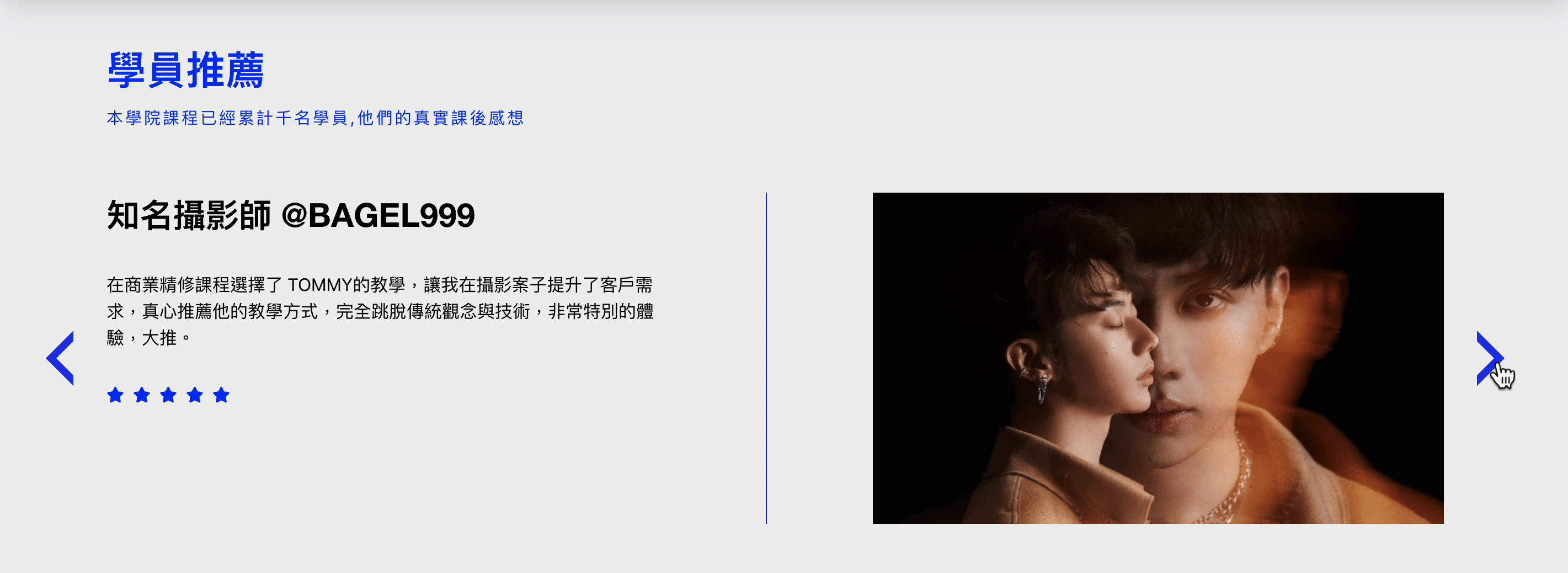 透過學生好評回饋的圖文輪播模組,學生們可以分享他們對於課程的評價和心得。